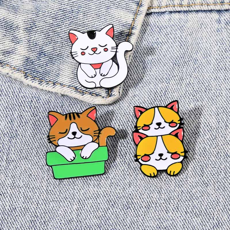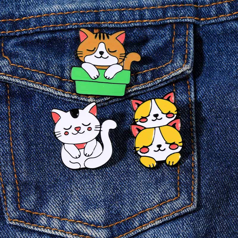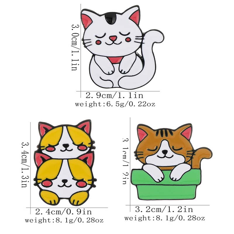 This sleepy cat pin set has 3 adorable napping kitties (in-box, stacked, curled)—soft, whimsical charm. For cat lovers, it adds cozy flair to bags/jackets, ideal for daily styling or infusing outfits with warm, playful feline cuteness.