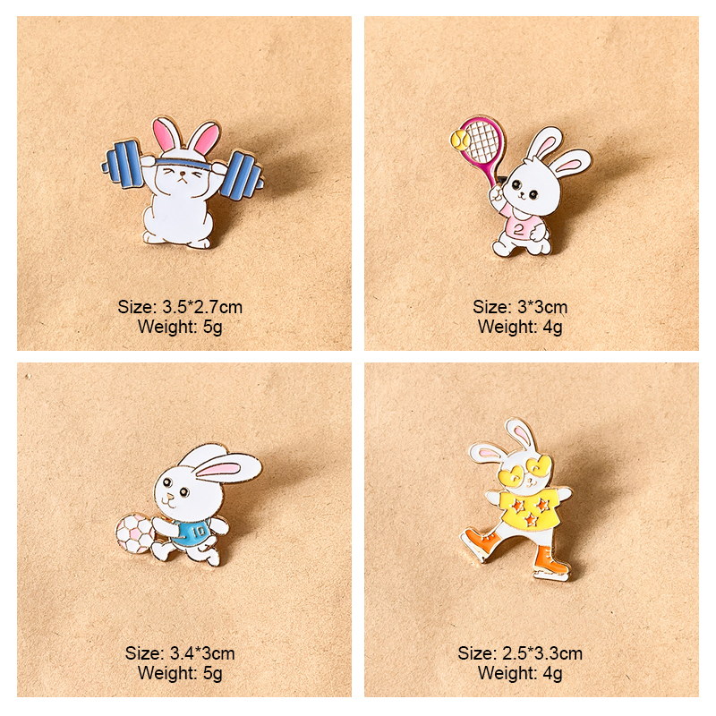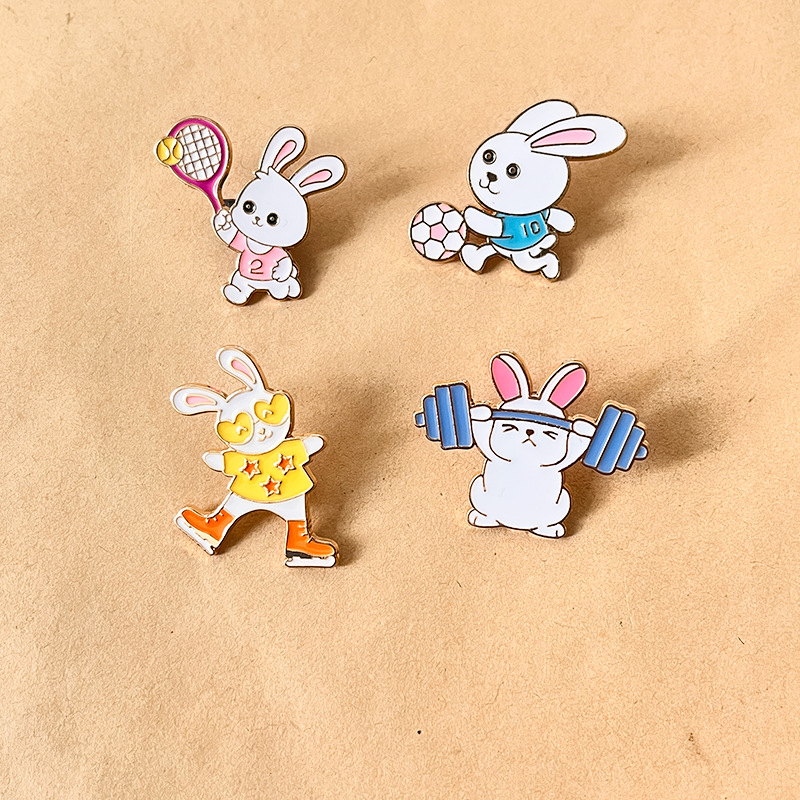 These vibrant enamel pins (crisp metal outlines) feature bunnies in 4 sports: tennis, soccer, weightlifting, skating—blending cute animal charm with lively athletic vibes. Perfect for adding cheerful, sporty flair to bags/jackets or collecting as fun active-themed keepsakes.