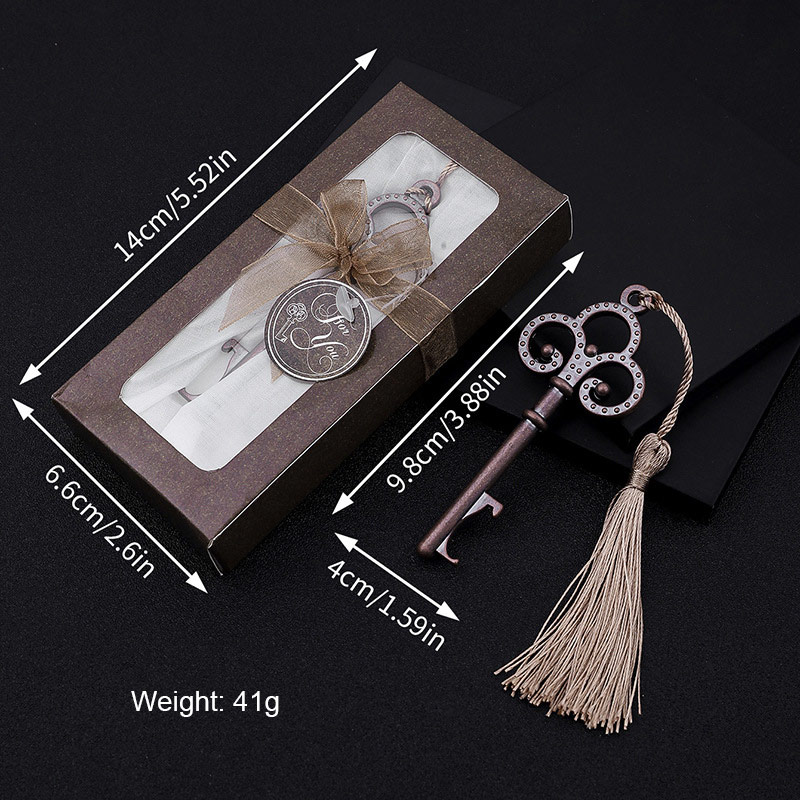 This 41g opener is shaped like an ornate vintage bronze key (with a tassel detail). It smoothly pops bottle caps, blending antique charm with practicality—ideal for themed parties, wedding favors, or gifting to decor lovers who favor classic style.