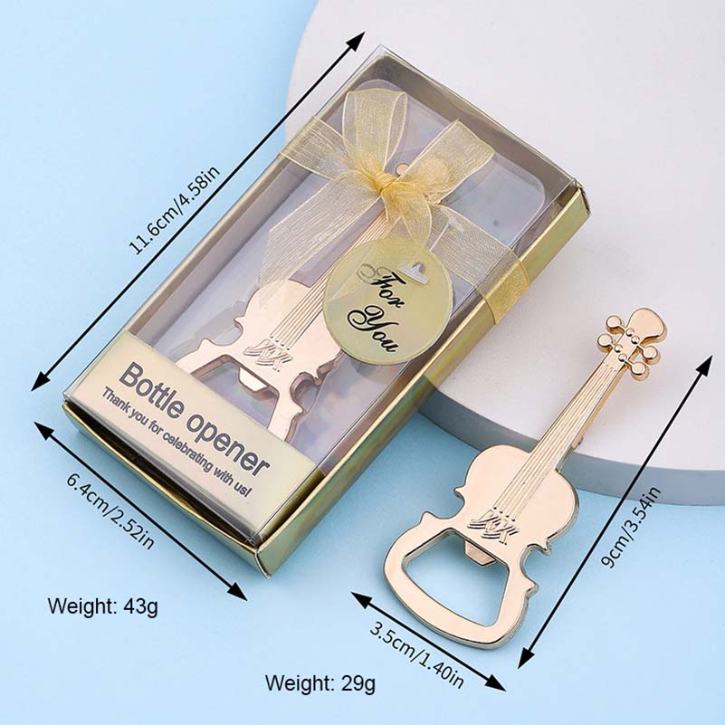 This 29g (9cm) gold opener mimics a detailed violin design. It easily removes bottle caps, merging musical charm with practicality—ideal for gifting music lovers, using as a party favor, or adding an artistic touch to barware.