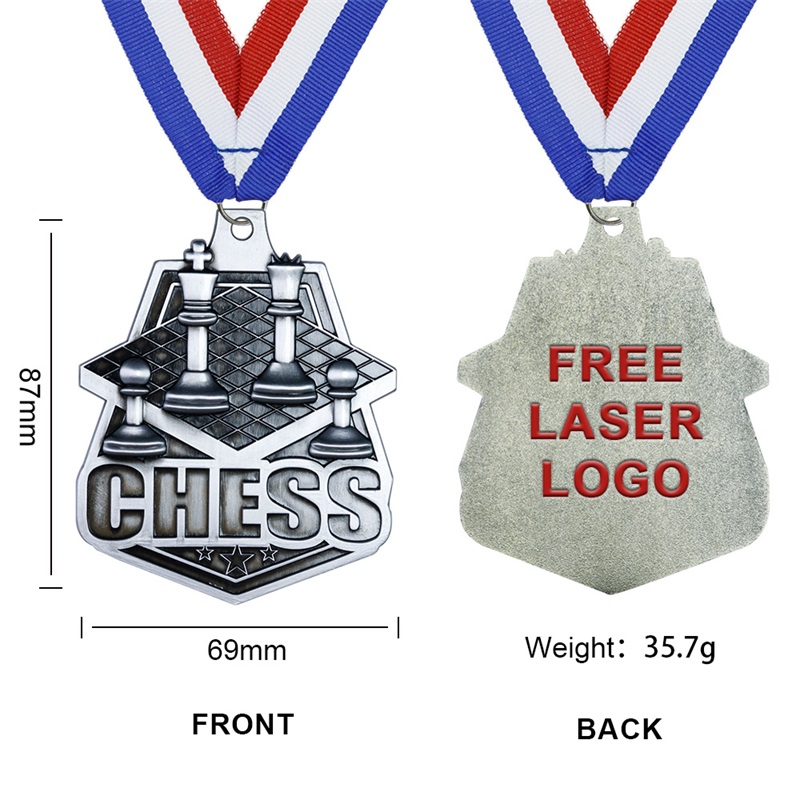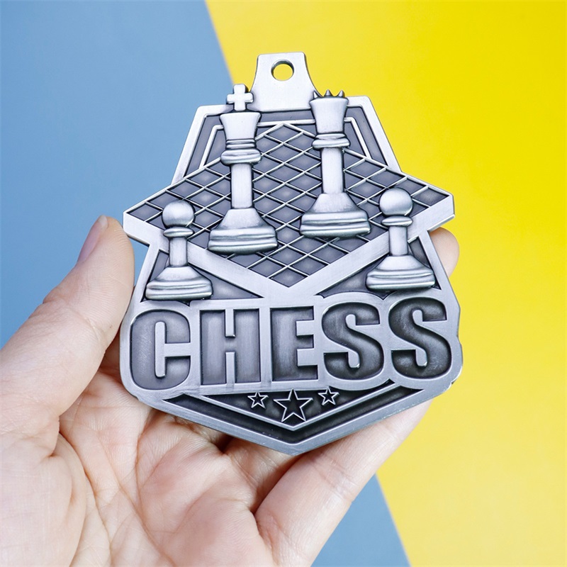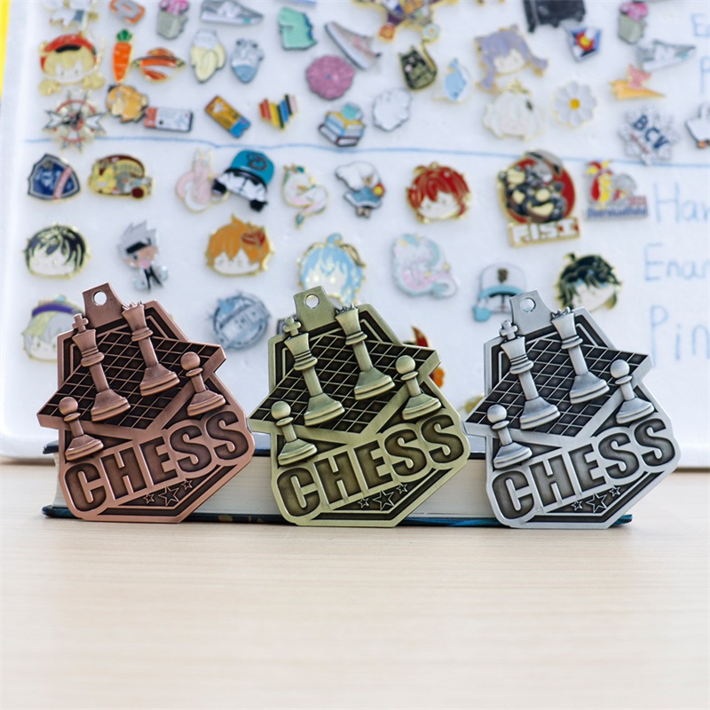 These sharp-edged, star-detailed chess medals (zinc alloy, electroplated antique gold/silver/copper) showcase embossed chess pieces and prominent "CHESS" lettering. Made for chess contests, they celebrate players’ tactical prowess, bringing a unique, theme-focused flair to tournament honors.